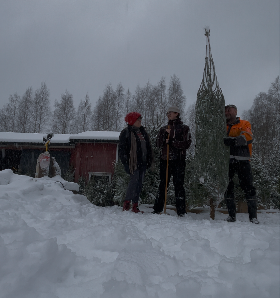 Jos et pääse olemaan kotona, voit tilauksen yhteydessä kirjoittaa toimitusohjeen (esim. mihin pihalle tai katoksen alle kuusen voi jättää). Me jätetään kuusi siihen, minne sovitaan – kunhan paikka on turvallinen eikä kuusi lähde naapurin matkaan.